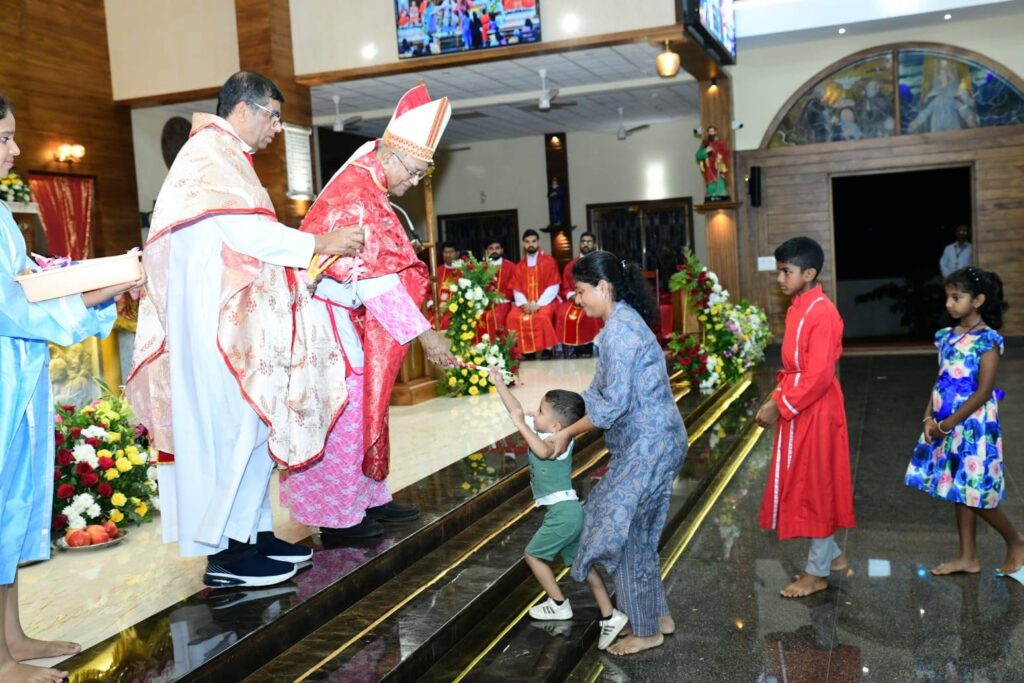 The Closing Ceremony of the Annual Feast of St Lawrence Church & Shrine, Bondel, was marked by profound devotion and solemn grandeur on Sunday, August 10, 2025. The Eucharistic celebration commenced at 6:00 p.m., with Emeritus Bishop Most Rev. Dr. Aloysius Paul D’Souza of the Mangalore Diocese as the main celebrant, leading the faithful in a grace-filled liturgy. He was joined at the altar by concelebrants Rev. Fr. Andrew Leo D’Souza, Parish Priest; Rev. Fr Lawrence Cutinha, Assistant Parish Priest; Rev. Fr Peter Gonsalves, Principal of St Lawrence English Medium School; together with several priests from neighbouring Parishes and the Varado, uniting in thanksgiving and praise.