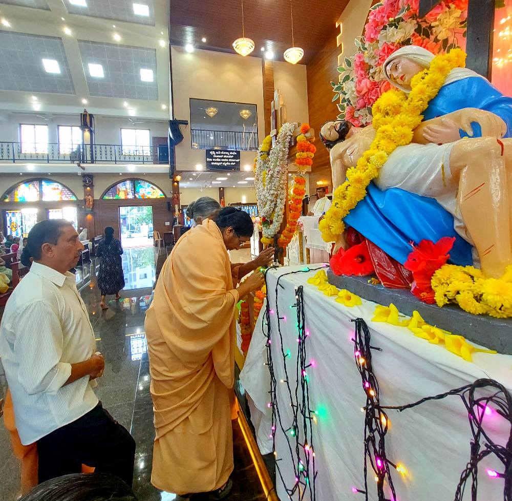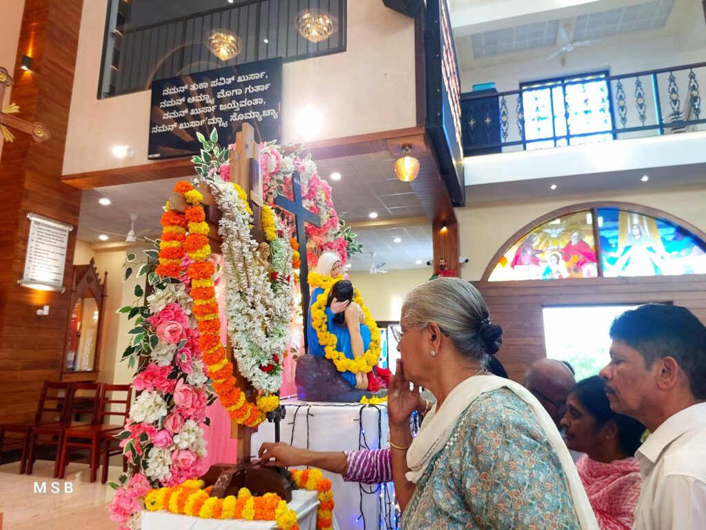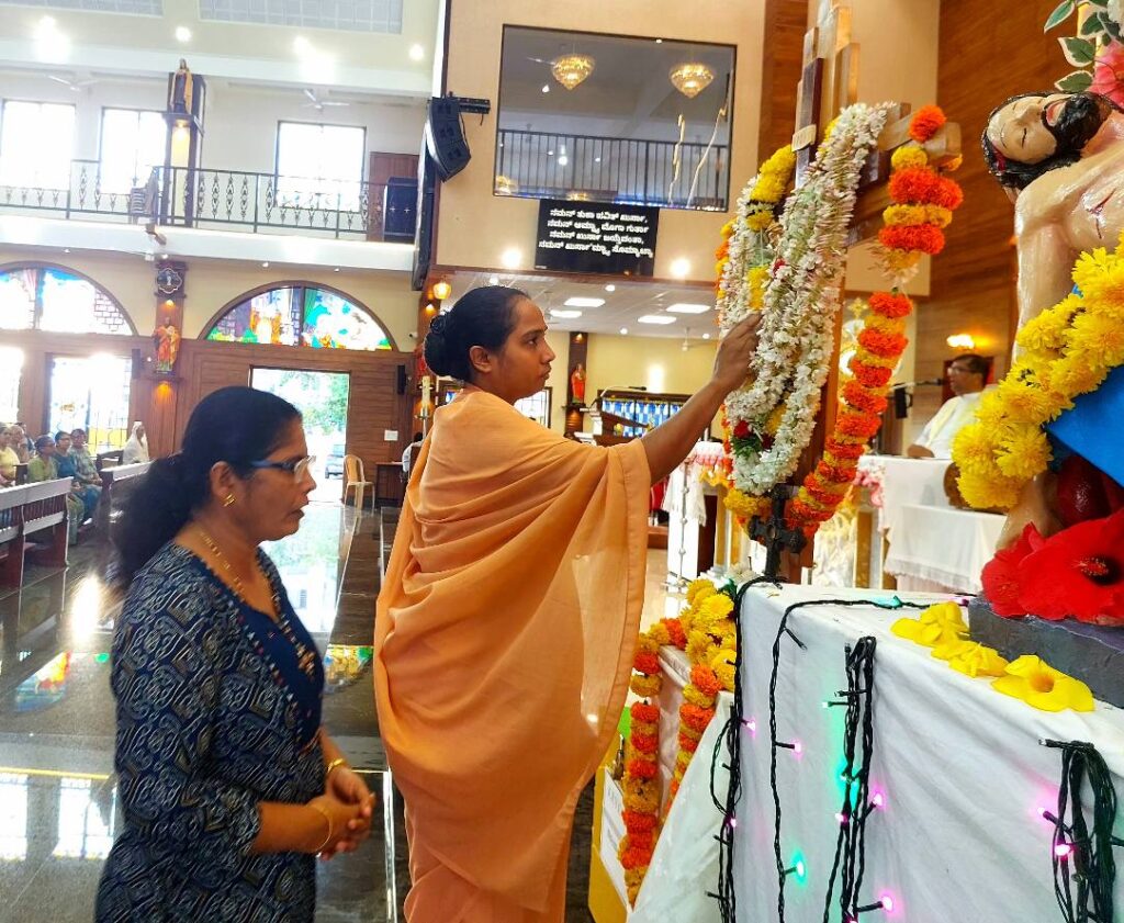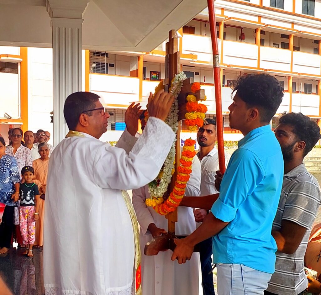 The Cross, brought from St Joseph the Worker Church, Vamanjoor, accompanied by the Indian Catholic Youth Movement (ICYM) City Deanery and Rev. Fr Jeevan Lobo, Assistant Priest, arrived at 5:00 p.m.