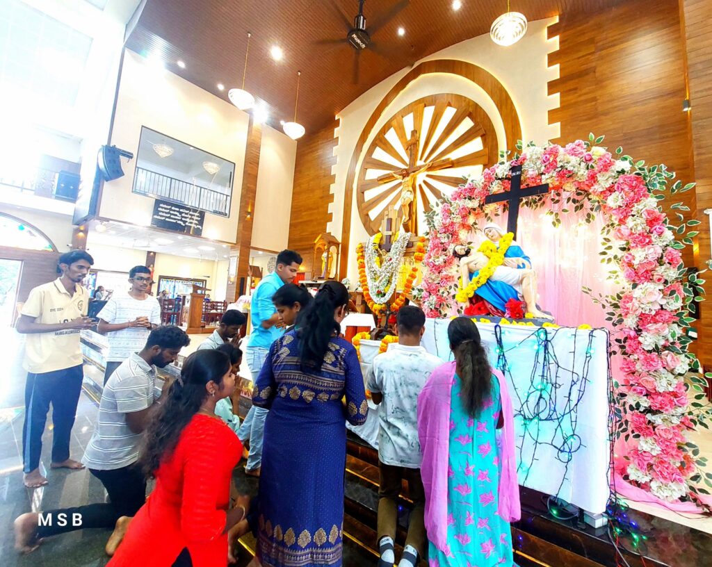 The liturgy was prayerfully led by the ICYM Bondel Unit, with the ICYM choir lifting hearts to God through melodious hymns of praise. The Blessed Sacrament was solemnly exposed for adoration and veneration, inviting the faithful to enter into deep, silent prayer before the Holy Cross, and to offer their personal intentions at the feet of the Lord. This sacred time of worship was followed by the celebration of the Holy Eucharist, the source and summit of Christian life. A large gathering of parishioners participated with great devotion, filling the church with an atmosphere of grace, reverence, and heartfelt prayer..