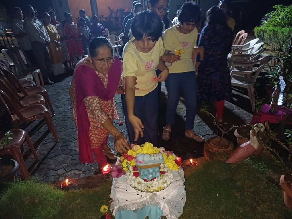 On Sunday, 14th September, St Joseph Ward joyfully celebrated the Nativity of Mother Mary at the residence of Dr Amith Menezes. The evening began with a heartfelt prayer hymn, after which Ward Gurkar Mr Manoj Lewis extended a warm welcome to the distinguished guests and all ward members. The ward members extended a warm welcome to Rev. Fr Andrew Leo Dsouza & and Rev.Fr Peter Gonsalves by presenting each with a rose.