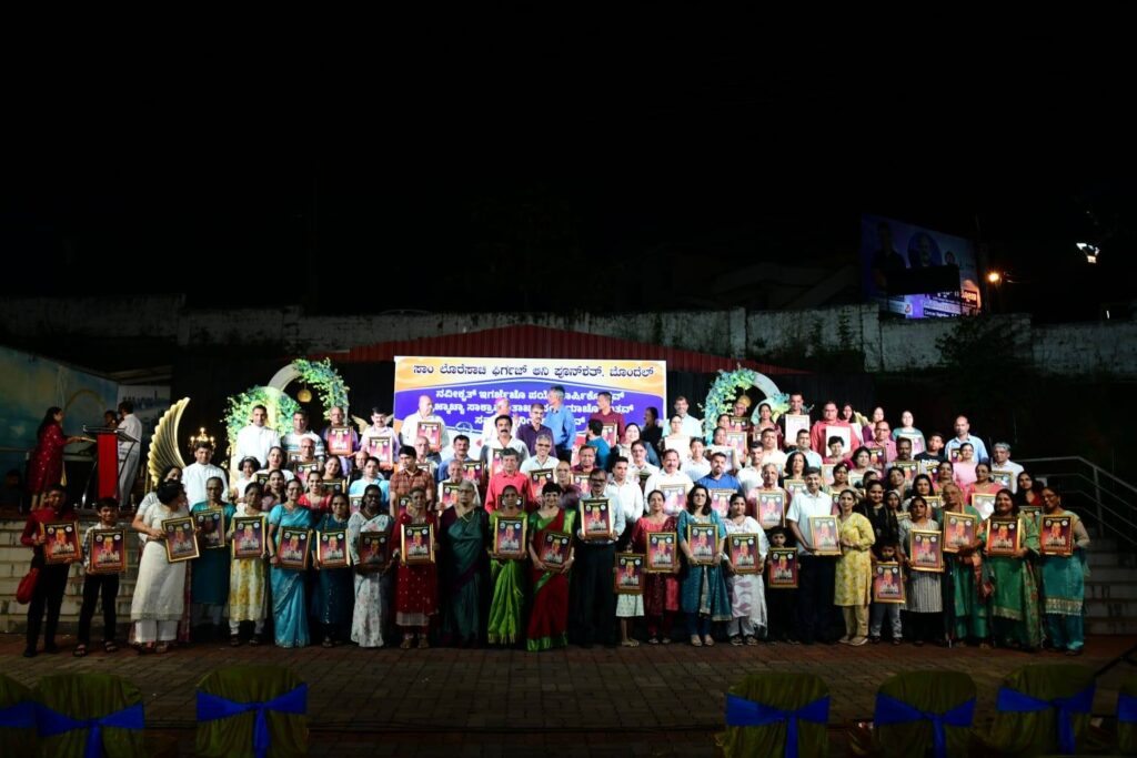 The main sponsors, donors who contributed materials, and all benefactors who donated ₹1 lakh and above were felicitated by Bishop Robert with a St Lawrence memento as a token of gratitude and love. Bishop Robert Miranda himself was felicitated by the parish clergy, the Vice President, and the Secretary of the PPC with a shawl, memento, fruits, and a flower bouquet.