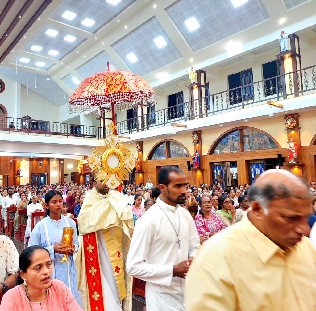 Following the Eucharistic Celebration, the Most Blessed Sacrament was solemnly exposed for public praise and worship. Rev. Fr Cyril Lobo led the faithful in heartfelt adoration, lifting prayers of thanksgiving and intercession.