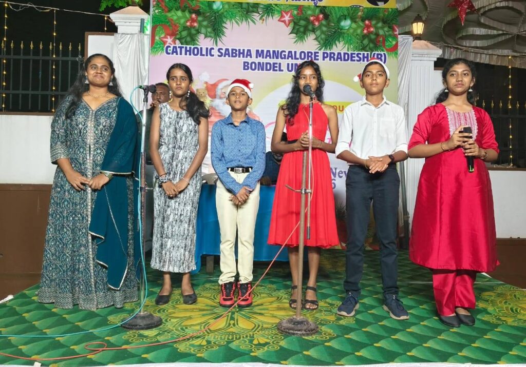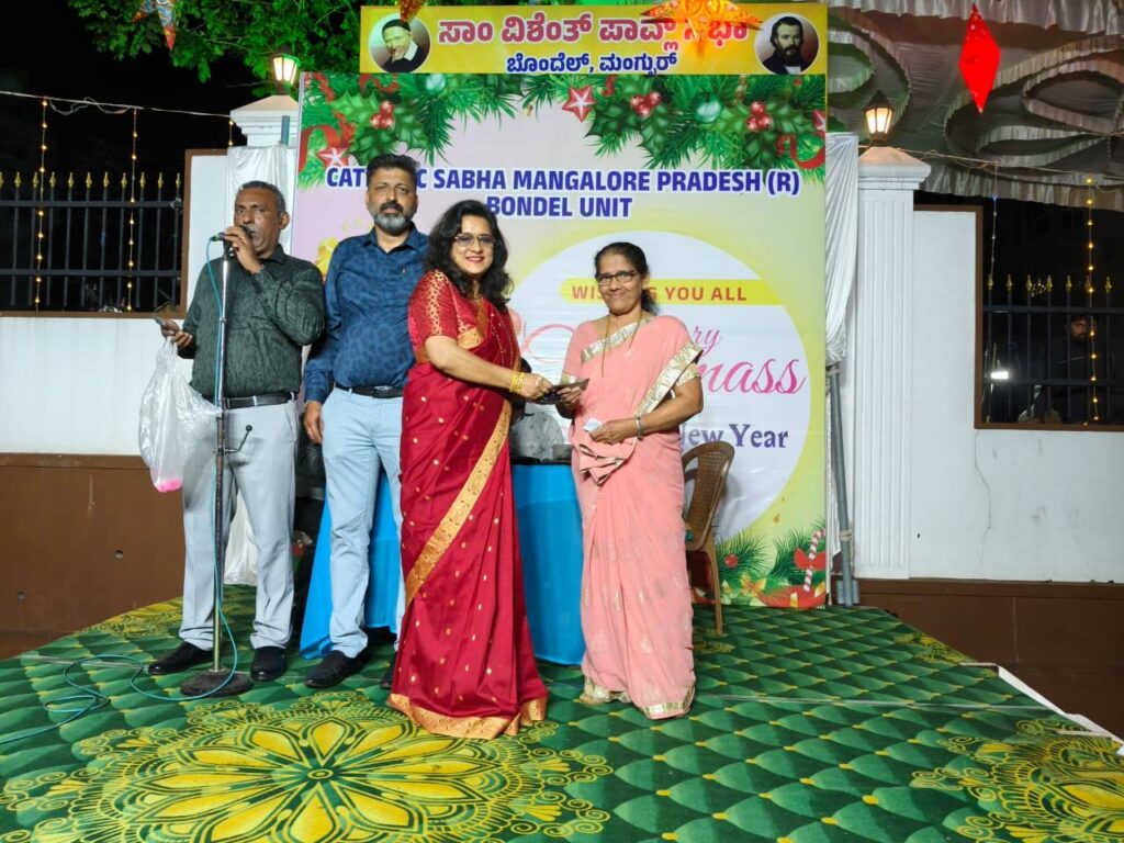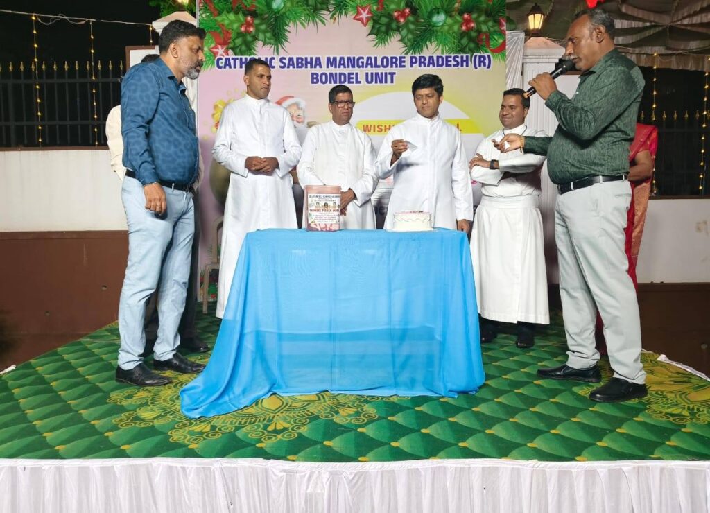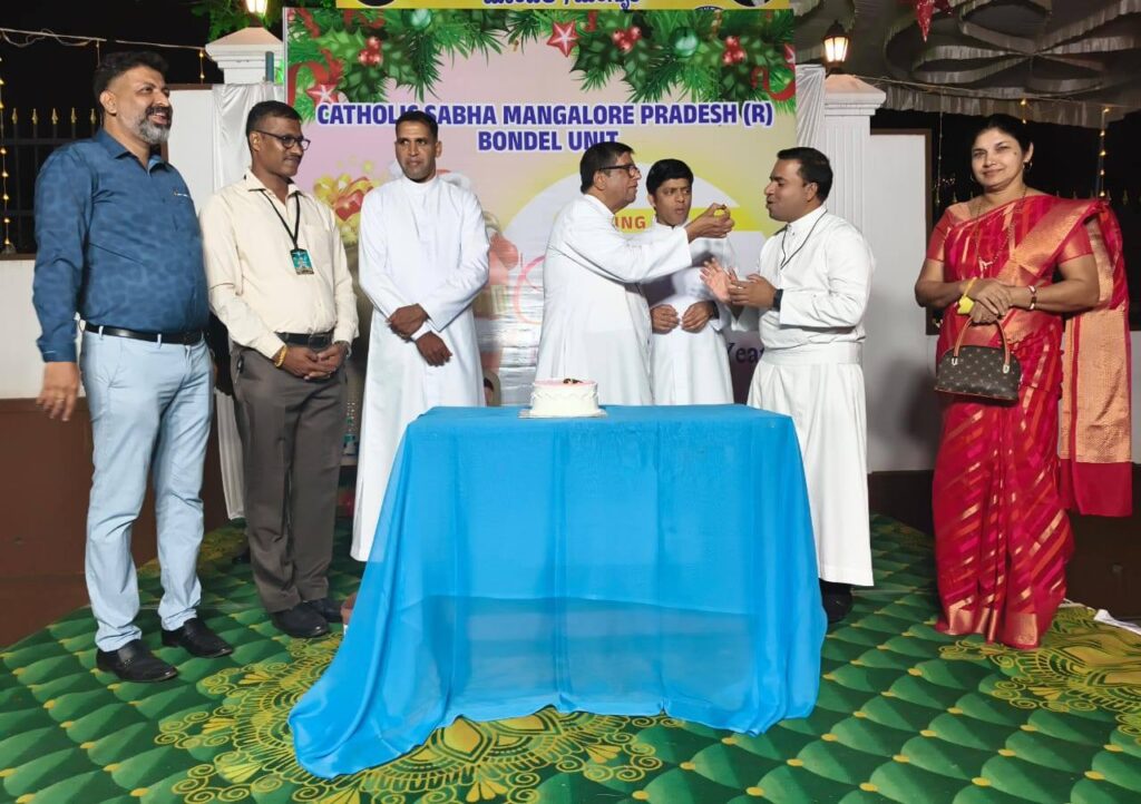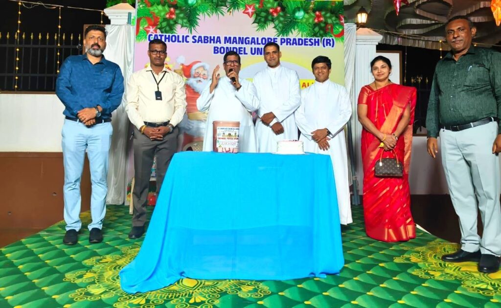 On 24th December, after the Christmas Eve Mass, the Catholic Sabha Bondel Unit organized a beautiful and joyful programme. The celebration began with a cake-cutting ceremony by Rev. Fr. Andrew Leo D’Souza, Parish Priest and Spiritual Guide, along with Rev. Fr. Lawrence Cutinha, Assistant Parish Priest, Rev. Fr. Peter Gonsalves, Principal of St. Lawrence English Medium School, Rev. Fr. Prem Prakash Cutinha, Mr. Santosh Misquith, Secretary of the Parish Pastoral Council, Mr. Sujay D’Silva, President, and Mrs. Olivia D’Sa, Secretary, all sharing the joy of Christmas.